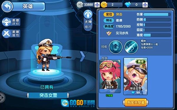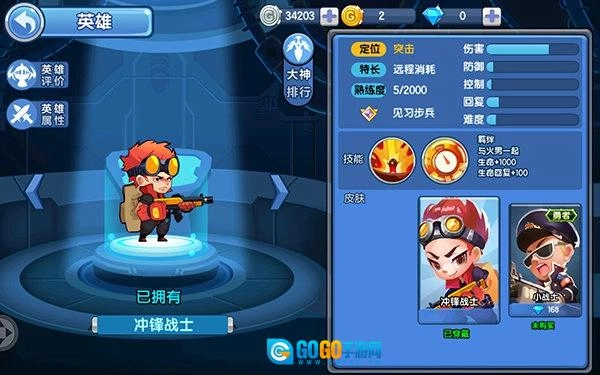 新手一开始会获得狙击手和冲锋战士这两个英雄,后续还能通过签到和购买的方式,获取更厉害、更酷炫的英雄。