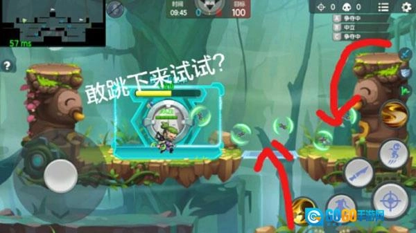在这个模式里,大家都清楚滑板极速状态下没人能追上,所以不如聊聊怎么防守。基地在下方还好说,要是在上方可就麻烦了。碰到这种在下方卡点的情况(如下图),哪怕伤害再高、防御再强也派不上用场。这时候忍者的作用就凸显出来了——对方抢旗的瞬间滑板效果刚好结束,他一落地就会被定身,接着三刀加一雷就能解决,这个方法试过很多次都很管用。
