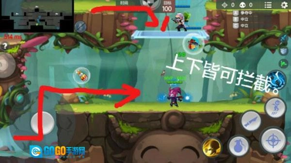 第一种打法是,开局派两三个忍者迅速抢占这个位置,在其上下区域进行拦截,把敌人全都控住,然后逐个消灭。等队友把点位占好后,就持续对敌人施展眩晕技能,把他们压制在出生点附近打。不过这种打法要留意两点:一是队友的配合是否到位,二是敌人会不会选择抱团反击。