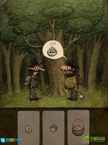 把马铃薯给强盗吃了,他就会放你过去,这时候游戏会解锁全地图。等强盗吃饱后,他还想喝酒,我们得去帮他弄来酒。