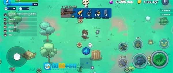 选好武器后便会正式进入游戏,左侧区域用于操控角色移动,右侧则依次分布着射击、投掷手雷、更换弹药、切换武器以及疾跑的按键。