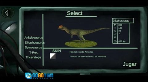 2、点击play后能够挑选不同的恐龙,共有五种不同的恐龙可供选择。