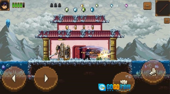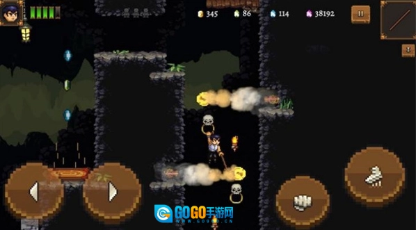 左侧摇杆控制移动,右侧则是攻击和跳跃。