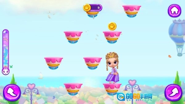 就像图里展示的那样,我进入了第一个小游戏关卡,要通过操控左右两边的跳跃按钮,协助公主向上跳跃,争取在时间结束前跳到更高的位置!