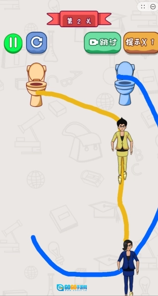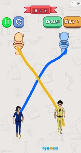 仔细观察角色和马桶之间的颜色匹配关系,先把每条路线的起点和终点明确下来,这样就能防止一开始划线的时候把不同路线弄混了。