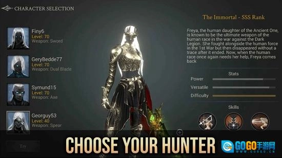 2.角色多样:提供大量不同的猎人角色让玩家挑选,每个角色都具备独特的技能体系、作战风格和成长路径,像近战类型的狂刃猎手、远程输出类型的影射猎手等,能够满足玩家多元化的战斗偏好。