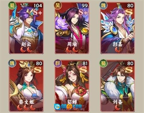 赵云+周瑜+郭嘉+蔡文姬+貂蝉+刘备