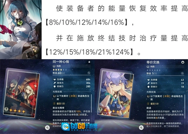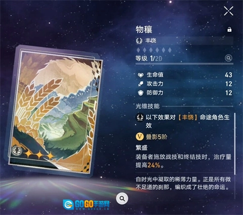 要是都没有的话,就用三星的「物穰」叠满五阶,这样能触发效果增加24%的治疗加成,释放战技或者大招都可以触发这个效果。