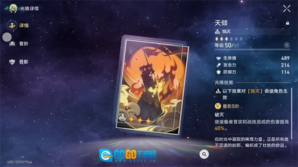 首推「天倾」,叠影容易达成,能带来高额普攻与战技伤害加成;主角大招无伤害属性,作用是强化普攻和战技,因此该光锥的效果可完全触发;部分低叠影的4星光锥给主角提供的伤害加成甚至不如它,唯一的遗憾是它仅为三星光锥。