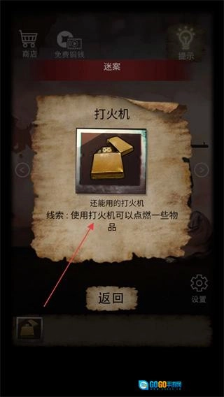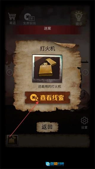 进入迷案界面后,先在物品栏里选中打火机,接着点击界面上的查看线索按钮,就能消耗相应点数来获取该物品的相关线索。