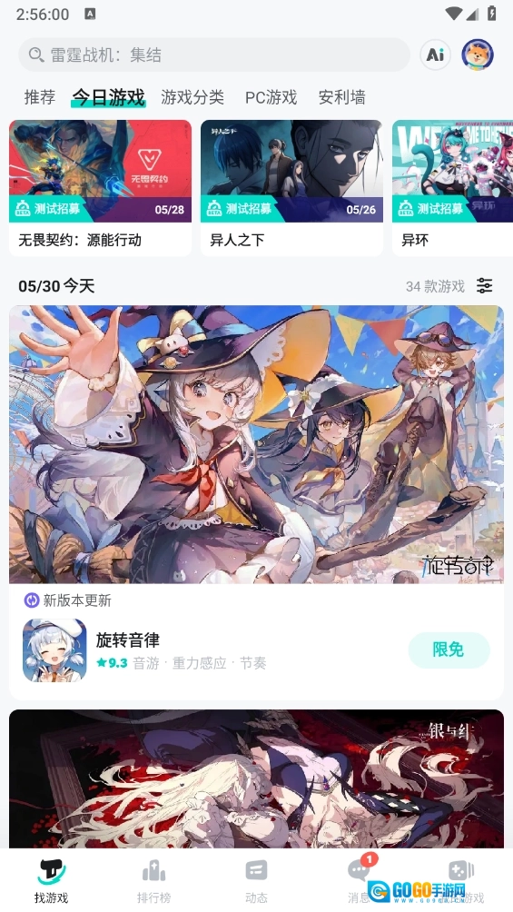 在主页就能滑动挑选心仪的游戏,还可以通过查看今日游戏、游戏分类来查找。