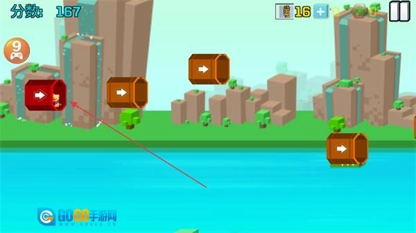 穿过传送门切换场景后,继续移动探索,分数提升至167。