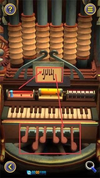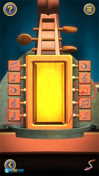 调整左右两侧的音符按钮,把对应的音符块匹配到指定位置,就能触发中间区域机关的状态变化。