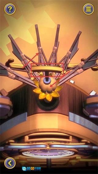 把对应部件安装到顶部的金色结构上,启动花蕊状装置,这样就能解锁后续解谜环节所需的机关道具了。