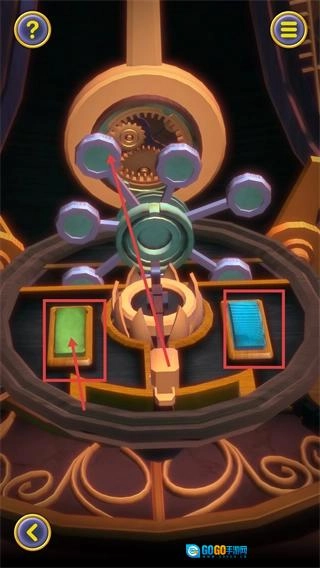 观察场景里的【绿色板块】和【蓝色板块】,调整齿轮部件的位置,让它和板块功能相匹配来推进解谜。