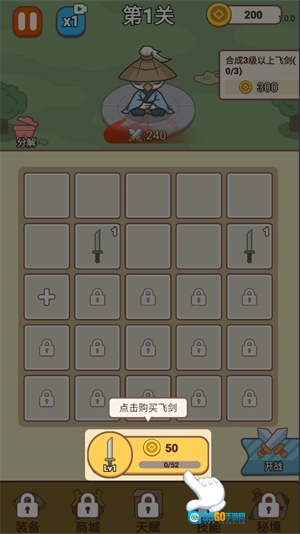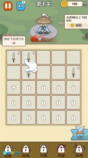 放置养成:游戏采用轻松的放置玩法,玩家可以通过合成宝剑来提升等级和能力。