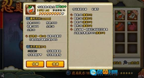 无尽痛楚究套装:这套以“痛楚究”命名的传说级忍具,当集齐并穿戴4件套后,能让晓组织忍者的奥义伤害提高30%,其属性主要偏向雷属性。