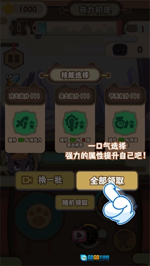 在每次发起攻击之前,都能点击“全部领取”按钮,一次性获取强力属性来提升自身实力!