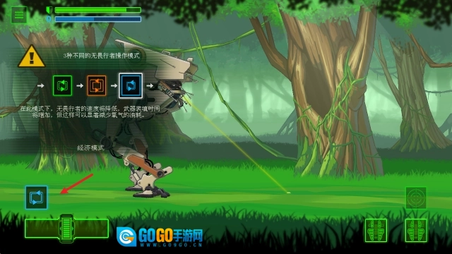 拖动左侧的拉杆,再点击右侧的左右脚按钮,交替操作就能实现前进或后退。
