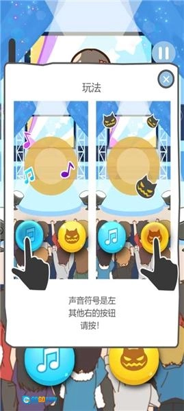 游戏的玩法十分简单:当女孩身旁出现声音符号时,点击左边的按钮;若出现的是声音符号以外的其他符号,则点击右边的按钮。