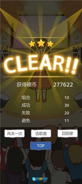 这时结束页面会显示你获得的金币数量、成功与失败的次数等信息,你既可以选择再次挑战,也可以回到家中装饰房子。