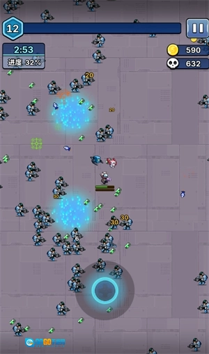 玩家需滑动轮盘操控角色移动,角色会自动攻击敌人。
