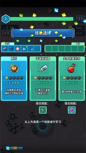 玩家积累足够经验后即可升级,升级时能从三种能力里挑选其中一项进行提升