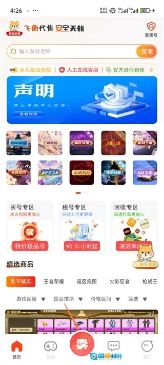 飞衡代售是一家正规的游戏账号交易平台,平台上涵盖了原神、王者荣耀、蛋仔派对等多种游戏类型的账号,所有账号均需经过严格审核方可发布,确保交易过程安全可靠,帮助用户购买到心仪的账号。