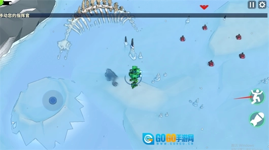 右边的按键是跳跃键,点击它就能让机甲完成跳跃动作,以此来跨越各种地形或者避开障碍物。