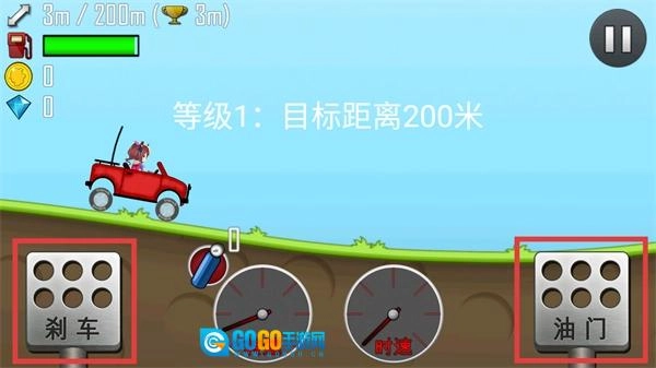 在关卡中,可借助【油门】【刹车】按钮操控车辆行进,并留意转速和时速的变化。