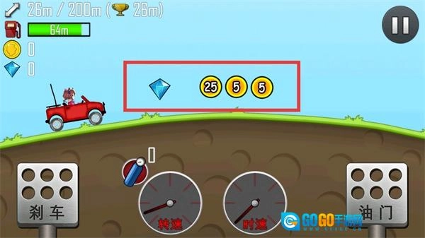 在行驶途中收集红框里的【钻石】与【金币】,一边积累资源,一边朝着200米的目标距离前进。