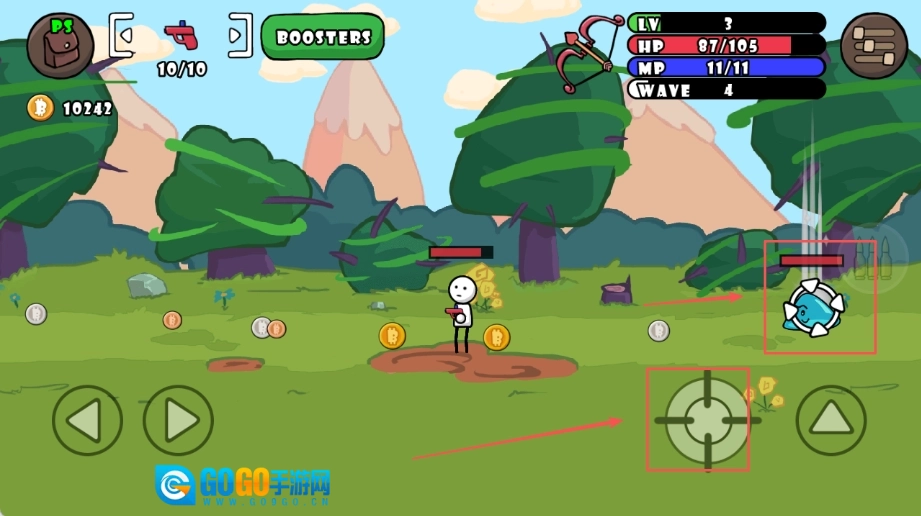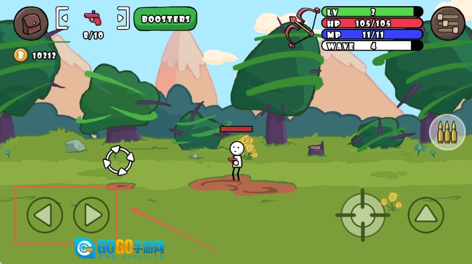 你可以通过左下角的按键来控制移动,借助虚拟摇杆能够精准地调整角色的移动方向。