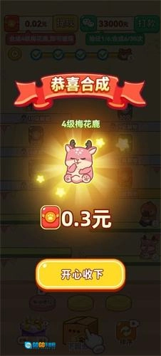 是真的,新人只要合成三级小猪,就能提现0.12;合成四级梅花鹿,就能提现0.3。