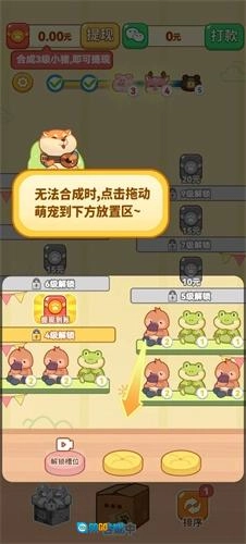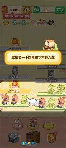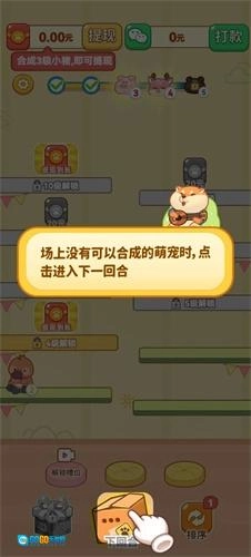 这款游戏采用合成玩法来达成提现目标,只要合成特定的萌宠就能直接发起提现,且所有红包都会实时到账。