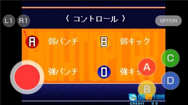 右侧的四个按键依次为轻拳【A】、轻腿【B】、重拳【C】、重腿【D】。