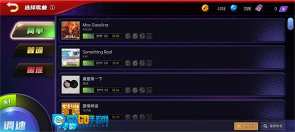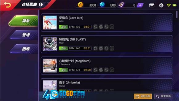 每种模式下都设有简单、普通和困难三类关卡供玩家选择,同时还能在一至八级的范围内挑选从简单到困难的歌曲速度。若想解锁普通难度的歌曲,需要在简单模式中获得A级评价;而要解锁困难难度的歌曲,则要求在简单和普通模式下的歌曲均取得A级评价。