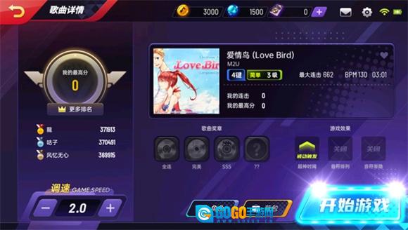 选好歌曲后,在正式开始前,你可以在屏幕中间对游戏里的一些效果进行设置。