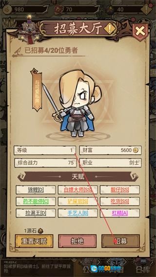 前往招募大厅,这座建筑能招募勇者,点击进入后可以挑选勇者来进行招募操作。