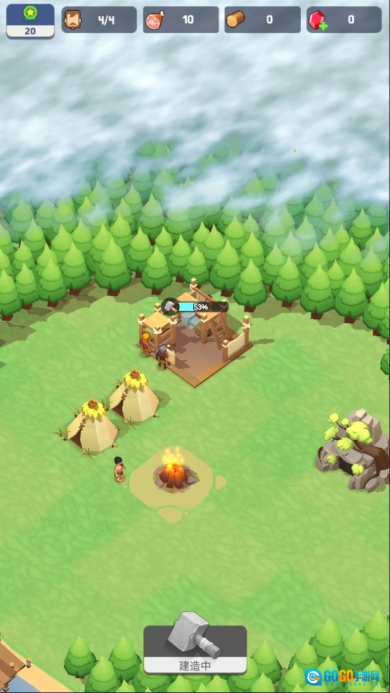 1、进入游戏后,首先得建造一栋房屋,再添置篝火,为夜晚的降临做好准备。