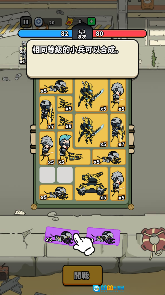 1、进入游戏后,首先要熟悉合成系统,通过对不同兵种进行合理搭配组合,打造出强大的战斗阵容。