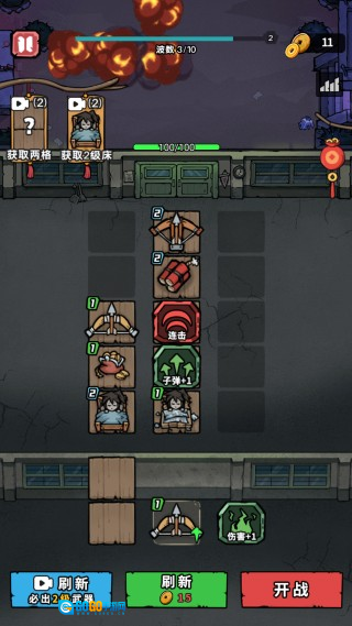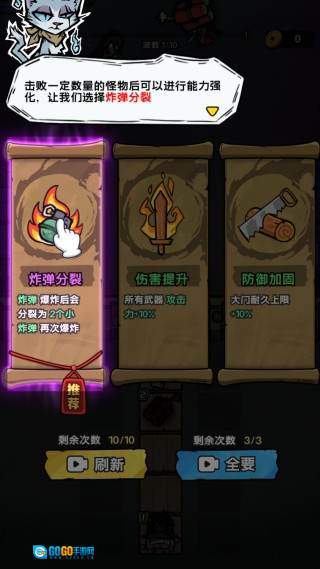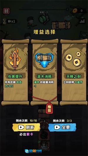 2. 每一波都会有数量不等的敌人等待你去消灭,同时你还能自由选择各类强化选项。