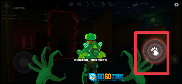 怪物的任务是抓捕所有幸存者1、你要在场景里寻找执行任务的幸存者们,点击带有绿色图案的按钮,就能穿过墙壁发现玩家的位置
