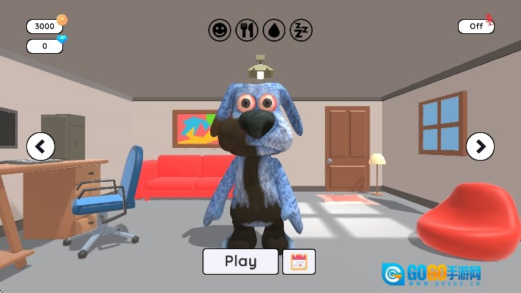 3、点击左右箭头可切换房间内的任意场景,我们可以先到厨房,给巴勃罗喂食;
