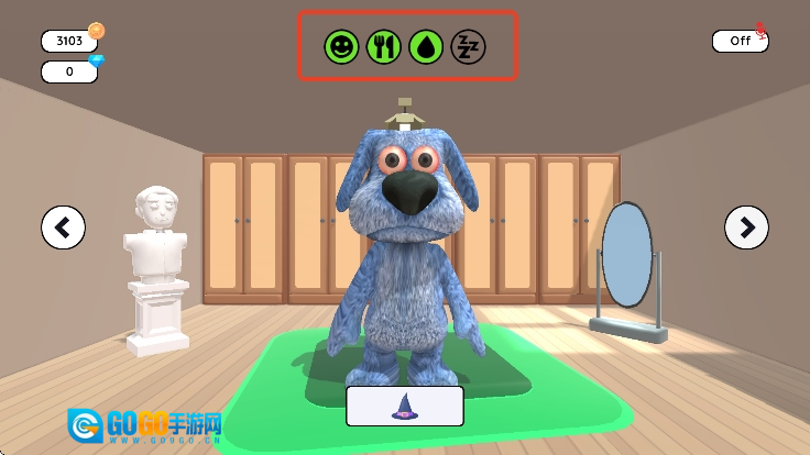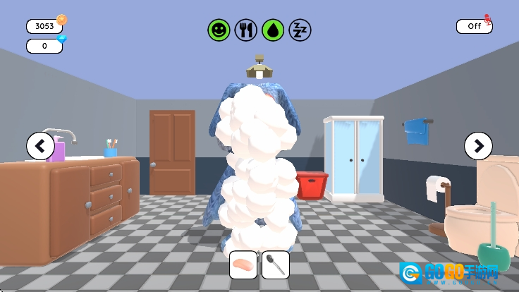 4、切换到浴室后,能给巴勃罗涂肥皂洗澡,把它打理得干干净净,同时它的清洁度也会随之提升;