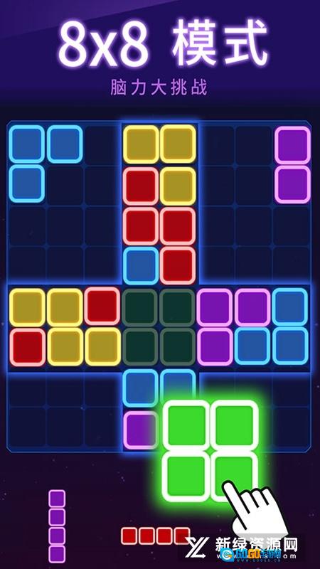 1、经典俄罗斯方块消除游戏推出全新版本,方块采用亮眼的荧光设计