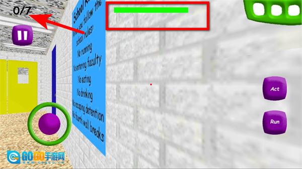 1、借助左侧的虚拟摇杆来操控角色的移动,以此躲避巴迪老师的追捕。
