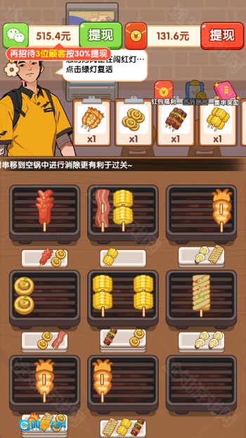 《烧烤工厂红包版》是一款以烧烤为核心主题的游戏,它巧妙地融合了三消玩法机制。在游戏过程中,玩家需要依据不同的需求来完成烧烤任务。游戏内关卡设置十分丰富,每个关卡都有其独特的任务目标,并且随着关卡的推进,难度会逐步提升,这对玩家的操作能力是不小的考验。如果对这款游戏感兴趣,那就赶紧行动起来吧!