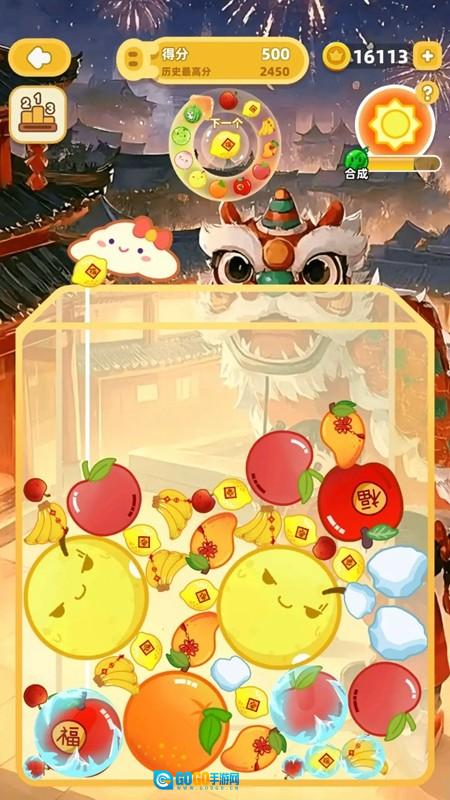 1.精致的画面呈现:游戏采用色彩明快的视觉效果与萌趣的卡通画风,构建出惬意欢乐的游戏氛围。 2. 合成玩法机制:玩家可通过收集指定的水果或物品来合成全新角色或道具,丰富了游戏的收集维度与内容深度。