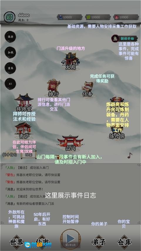 3. 合理规划弟子的修炼任务与资源分配,助力他们持续成长,为宗门的发展贡献力量。4.同时,可以建设宗门的各种设施和建筑,提升宗门的实力和影响力,吸引更多弟子。