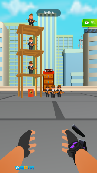 2、也可以借助场景里的互动元素,比如炸药桶、飞机之类的,来把所有敌人都消灭掉。